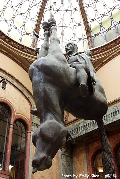 而最有名是在中庭上的『倒吊馬』藝術品,