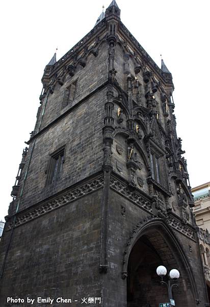『火藥門』是位於巿政廳右側的灰黑色高塔,哥德式的建築物。
