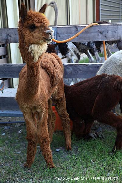 農場主人在入口處有一隻可愛草泥馬,
