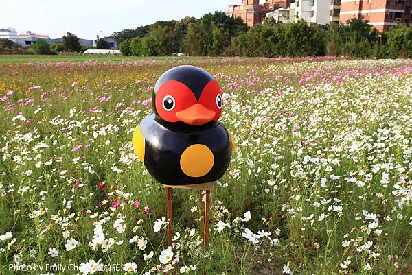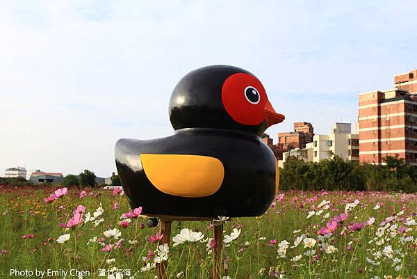 黑面鴨沒有出現在河裡竟然在花海中出現,