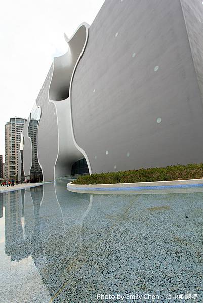 『台中歌劇院』-基地面積5萬7020.46平方公尺;建築高度37.7公尺,地下2層、地上6層,鋼筋混凝土構造,部份為鋼構造;建築師伊東豊雄為歌劇院設計的建築原理是以人類最原始的「洞窟」、「地穴」概念設計出美聲涵洞(Sound Cave)的曲牆建築,內部牆面均為曲面,共有58面曲牆,興建難度極高。因此被建築業界稱為「全球最難蓋的房子」。<出自維基百科>