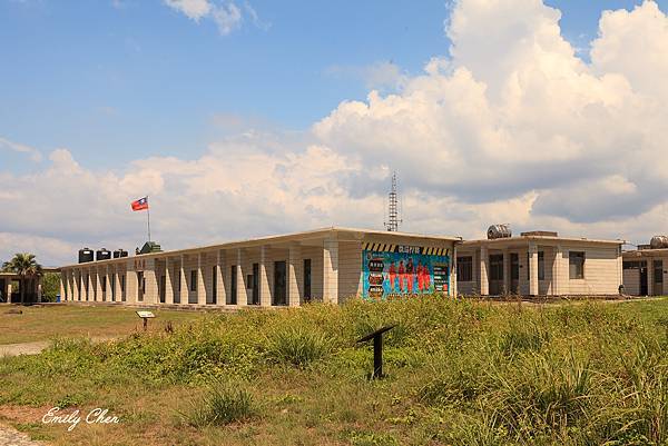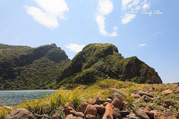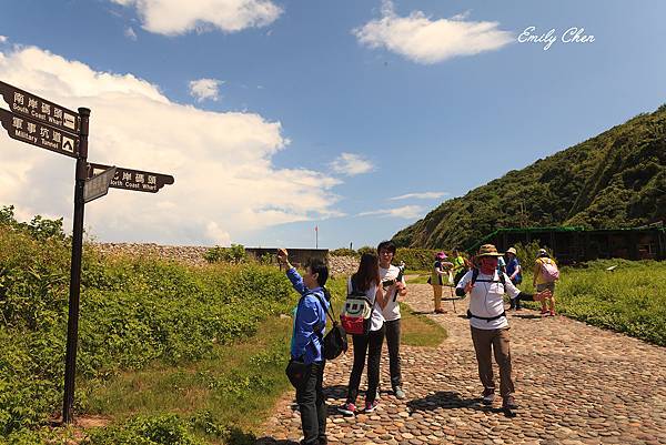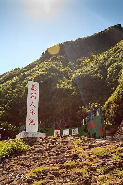 登島後遠遠看到紅字寫的「島孤人不孤」及「龜山島」,