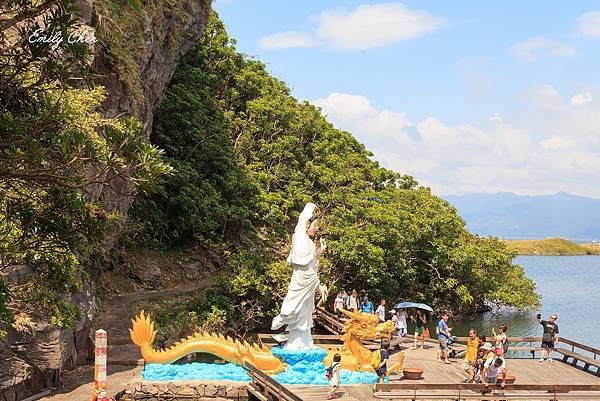 龜山頭部臨岸的海面有強烈的地泉湧出海面,