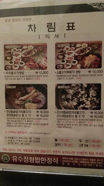 流水亭菜包飯韓定食(유수정쌈밥한정식) 營業時間:10:00~22:00