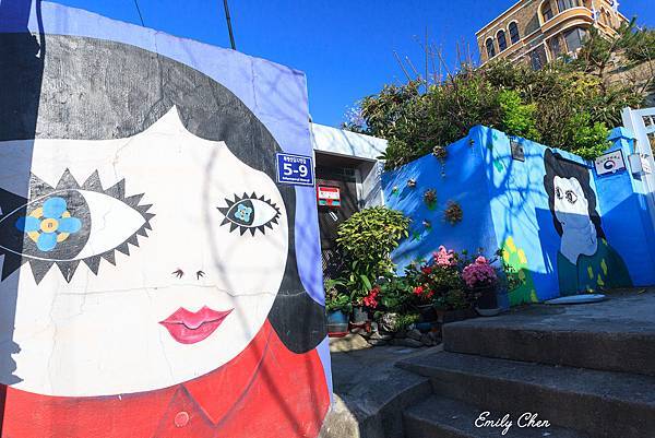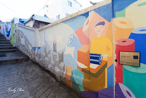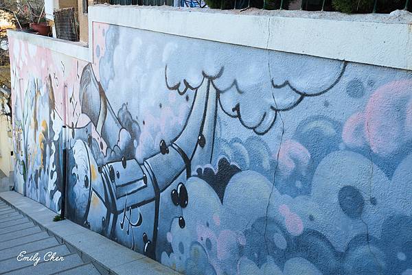 四十階梯主題街延伸街道則有『伏兵山壁畫村』,
