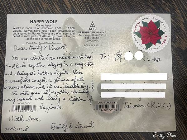 從北極聖誕老人村寄到台灣的證明。