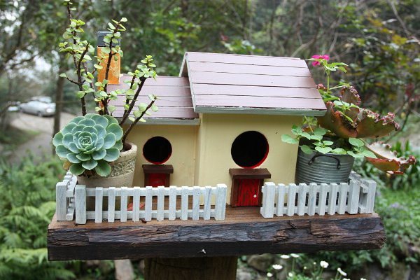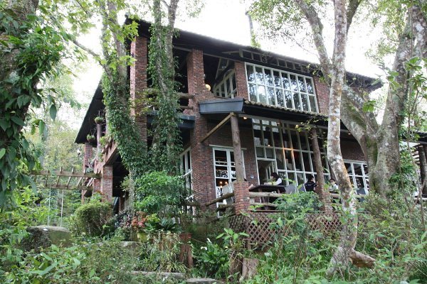 在樹林矗立裡做森林浴及欣賞老闆種植花卉之美,