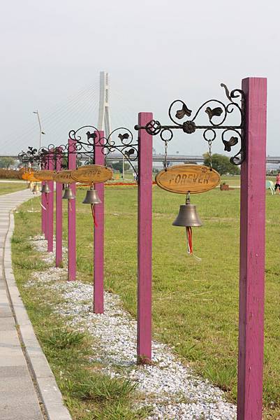 行人步道上也有幸福鐘聲,讓路人敲響愛的鐘聲,