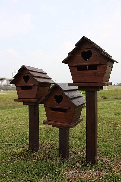 步道旁有很多可愛的愛心小信箱及貓頭鷹木頭陪襯,