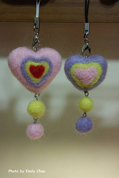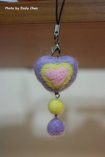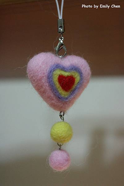 羊毛氈作品-愛心手機吊飾