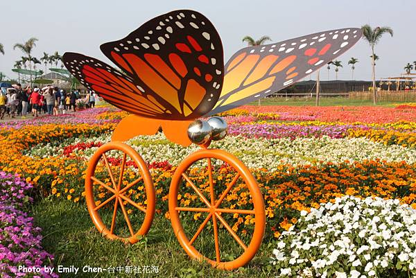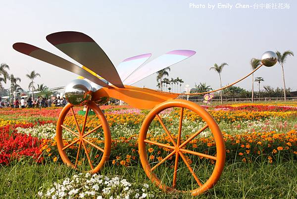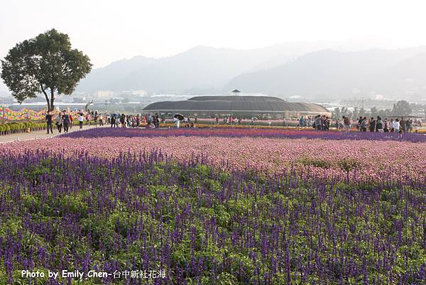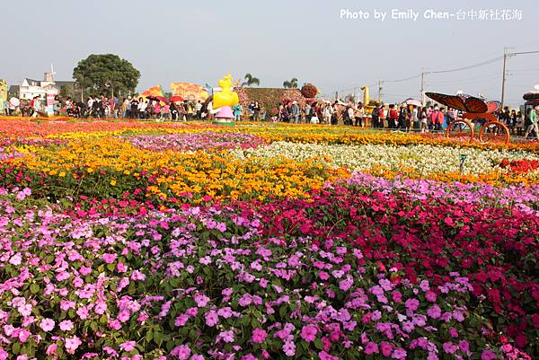 花田間不時有蜜蜂穿梭花叢採蜜。