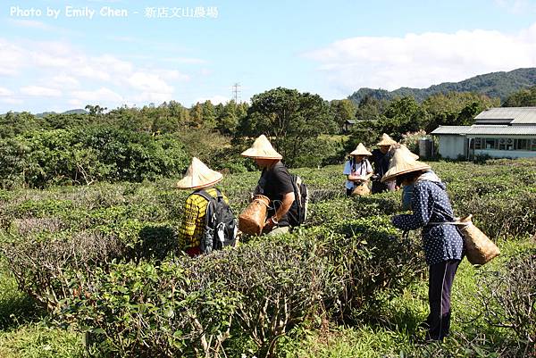 我們頭戴斗笠及繫上腰籃子前往茶園體驗採茶樂趣,