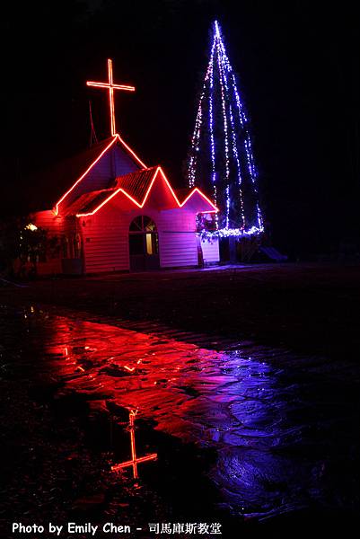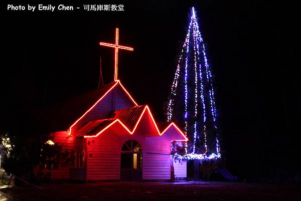 因為聖誕節將至,教堂旁則有燈飾佈置,