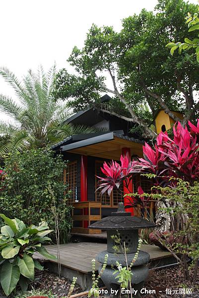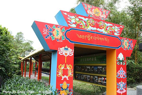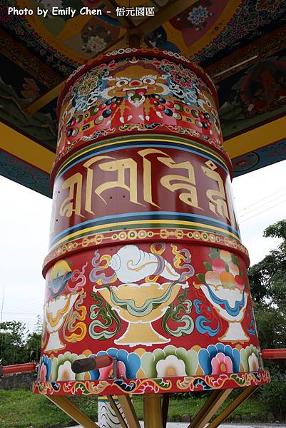 園區內有日式建築及西藏風格的建築物及輪迴轉,